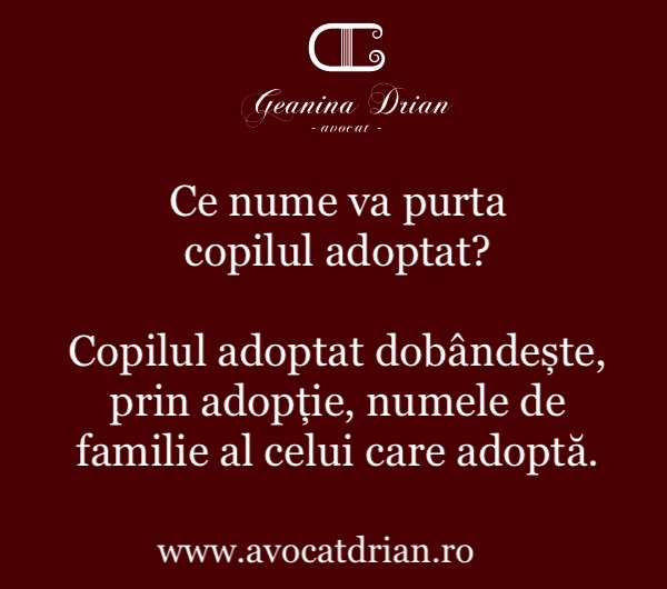 Copilul adoptat dobândește prin adopție numele de familie al celui care adoptă.