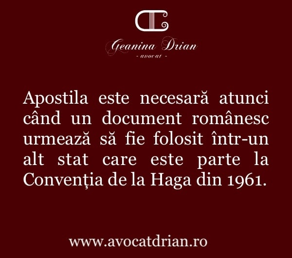 Apostila este necesară atunci când un document românesc urmează să fie folosit într-un alt stat care este parte la Convenția de la Haga din 1961.