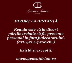 Astfel, în continuare vom analiza doar acest aspect: în ce condiții poate avea loc un divorț la distanta, adică fără prezența personală a părților.