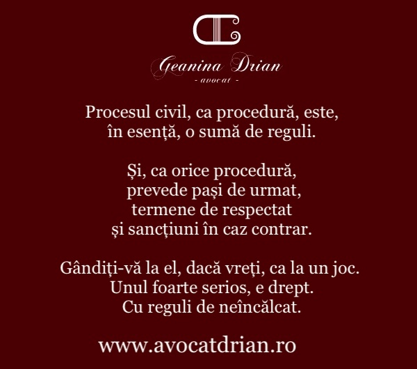 Însă înțelegerea a ceea ce urmează citației va fi, cu siguranta, de mare ajutor; astfel, povestim aici despre procesul civil – ce este, termene, reguli și procedura.