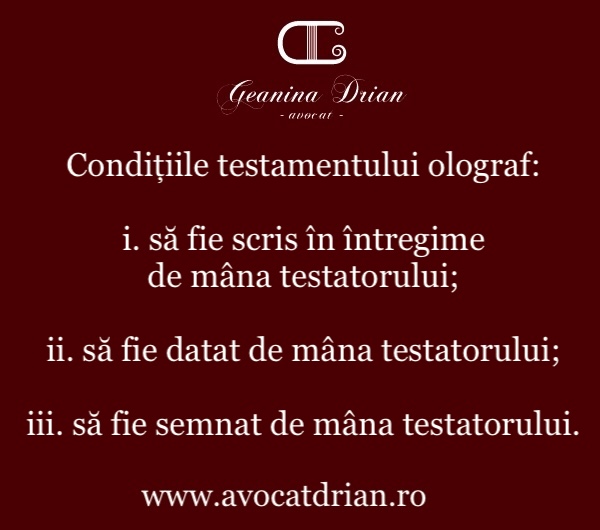 Ce condiții trebuie să îndeplinească un testament olograf?